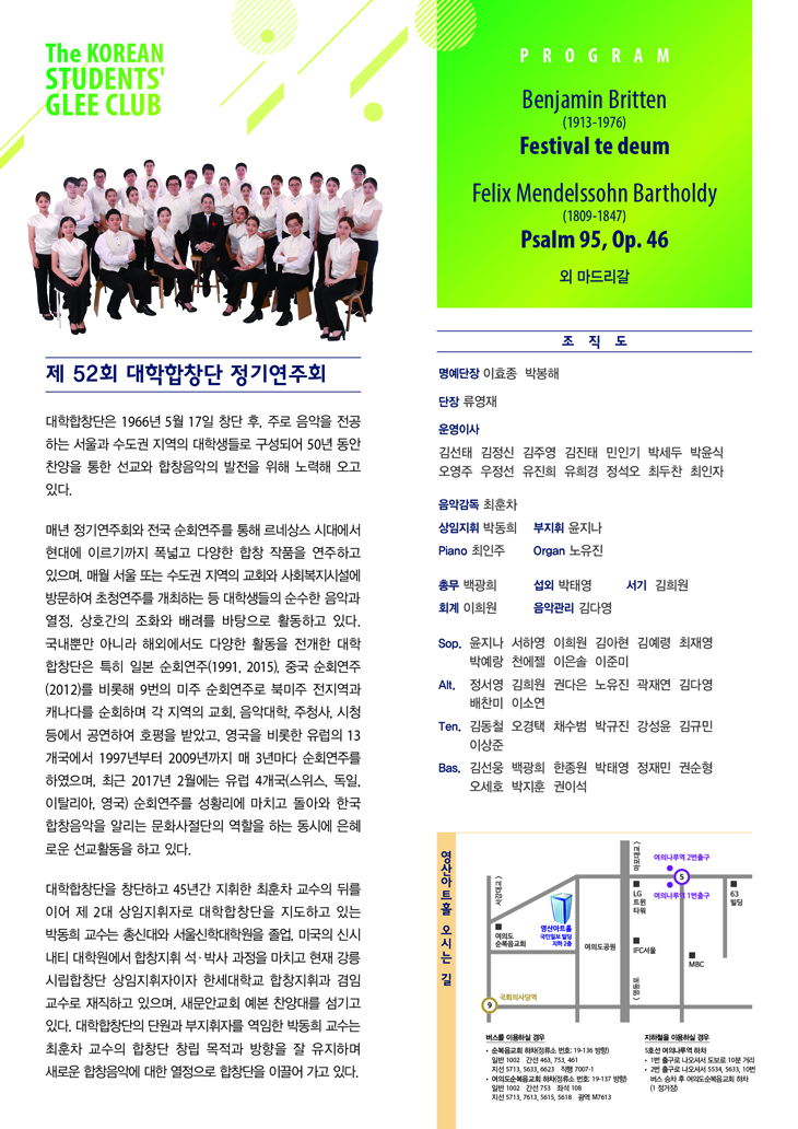 Á¦52ȸ ´ëÇÐÇÕâ´Ü Á¤±â¿¬ÁÖȸÀϽà 2017³â 5¿ù 1ÀÏ ¿ÀÈÄ7½Ã30ºÐÀå¼Ò ¿µ»ê¾ÆÆ®È¦
